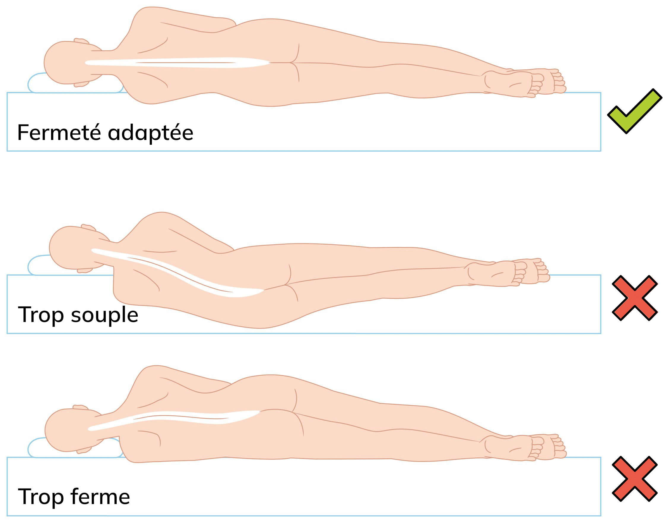 Un rembourrage ferme est indispensable pour vous afin d’éviter l’effet ‘hamac’ qui courbe la colonne.